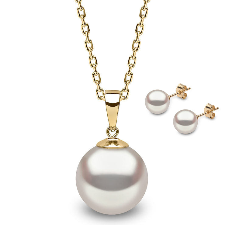18K Gold Pearl Pendant, Pearl Stud Earrings, Natural Pearl Jewelry Set, Mother’s Day Pearl Gift for Mom