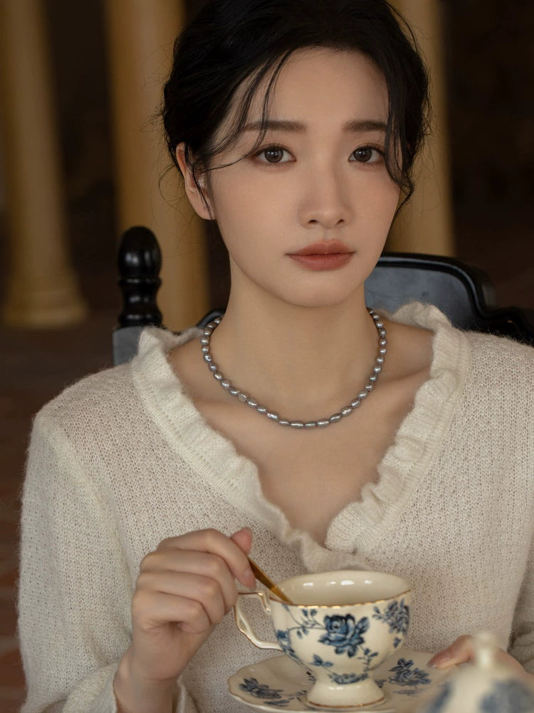 Natural Freshwater Pearl Necklace Handwoven Lace Small Pearl Choker Necklace