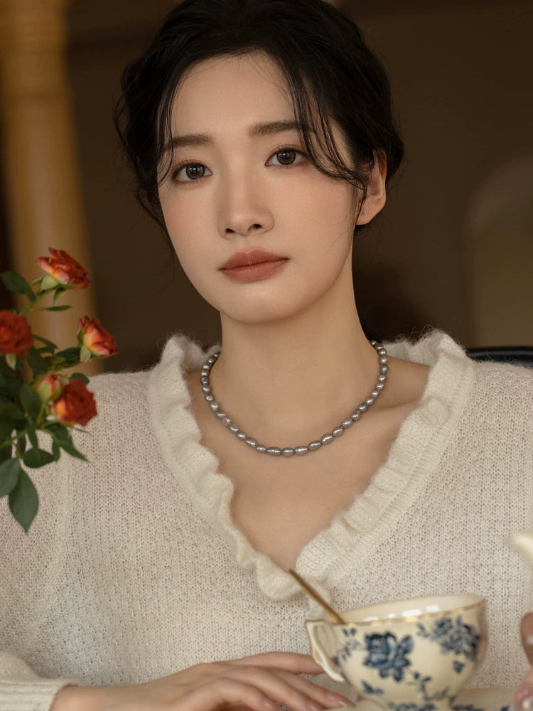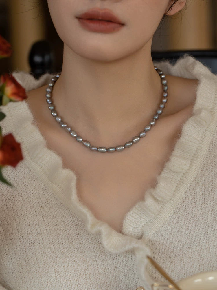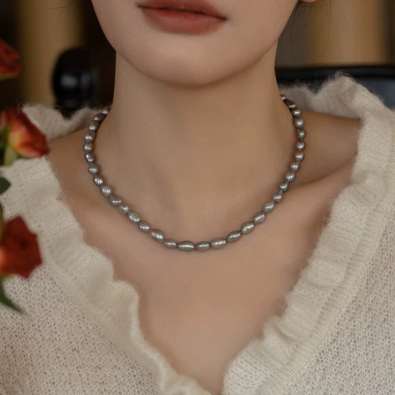 Natural Pearl Necklace Chain Choker Double Layer Retro Simple Girl Gift