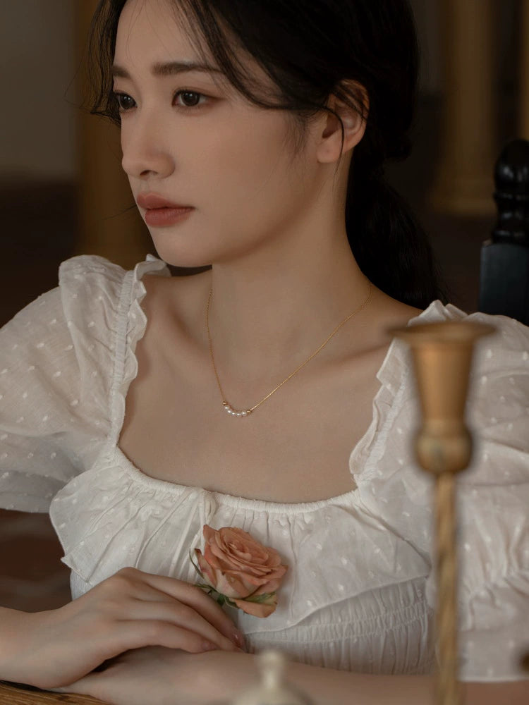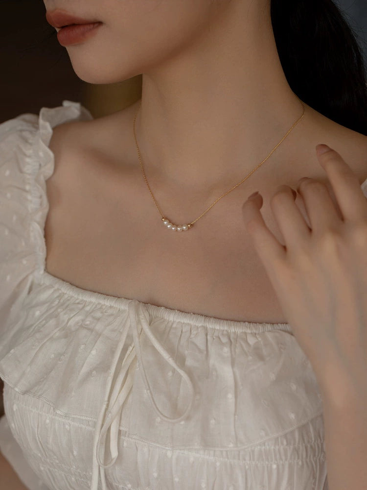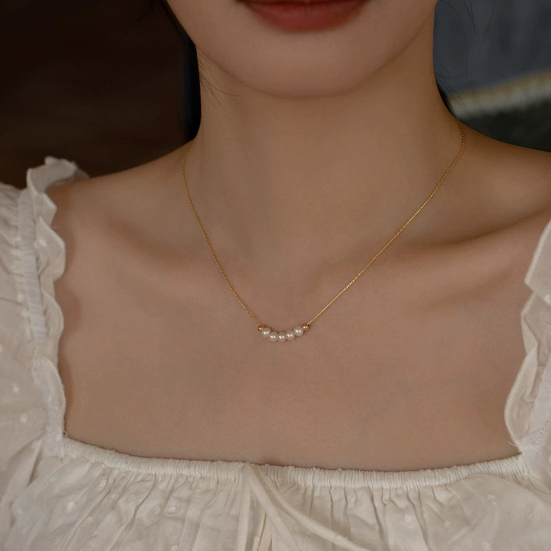 Vintage Natural Freshwater Pearl Gold Bead Necklace Women’s Chain Pearl Chain