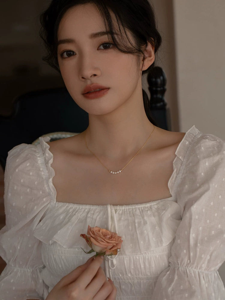 Natural Pearl Necklace Chain Choker Double Layer Retro Simple Girl Gift