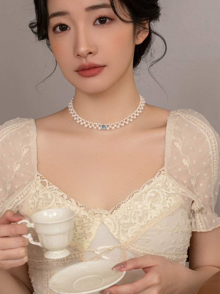Natural Freshwater Pearl Necklace Handwoven Lace Small Pearl Choker Necklace