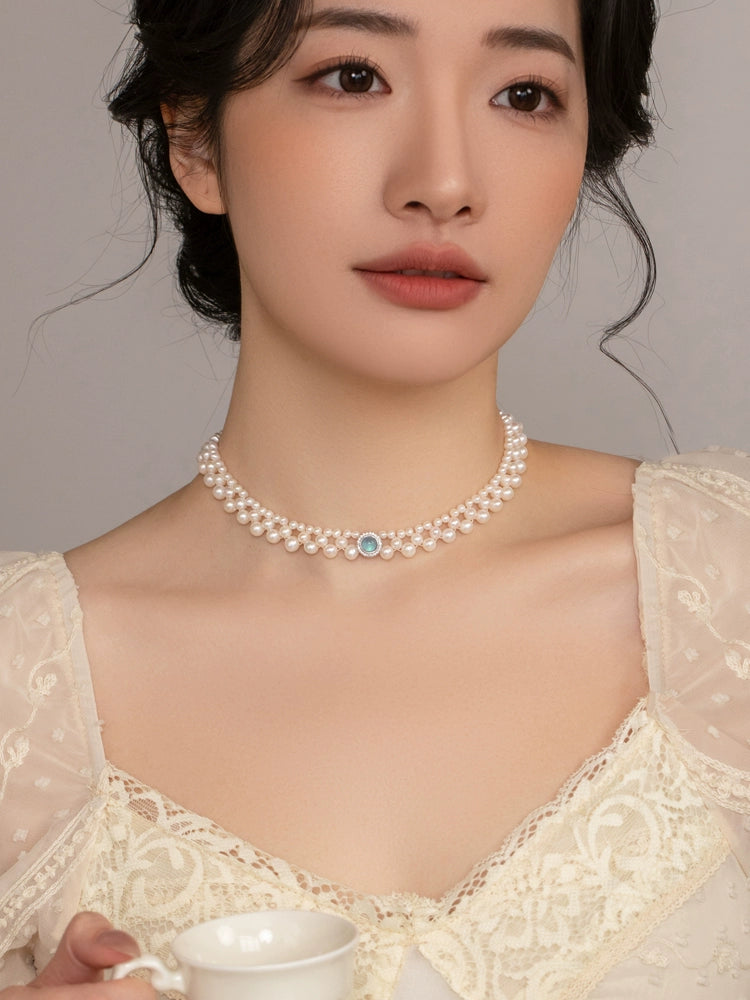 Aquamarine Pearl Necklace S925 Sterling Silver Premium 925 Silver Girl