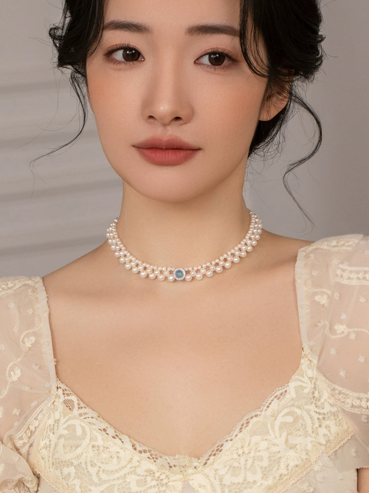 Natural Pearl Necklace Chain Choker Double Layer Retro Simple Girl Gift
