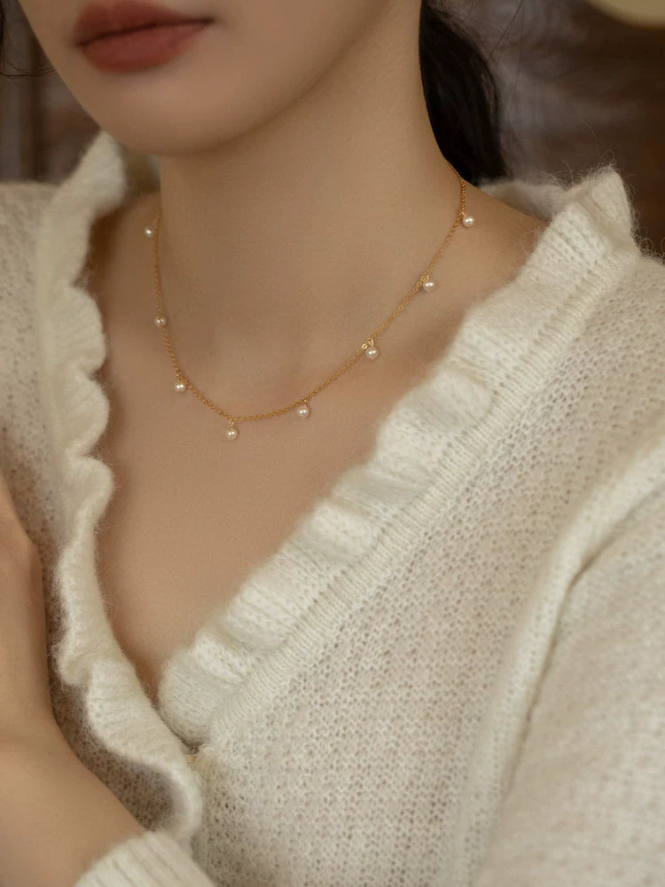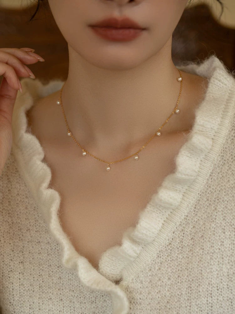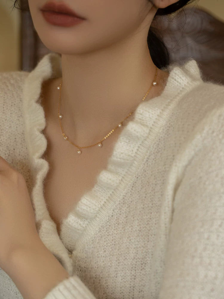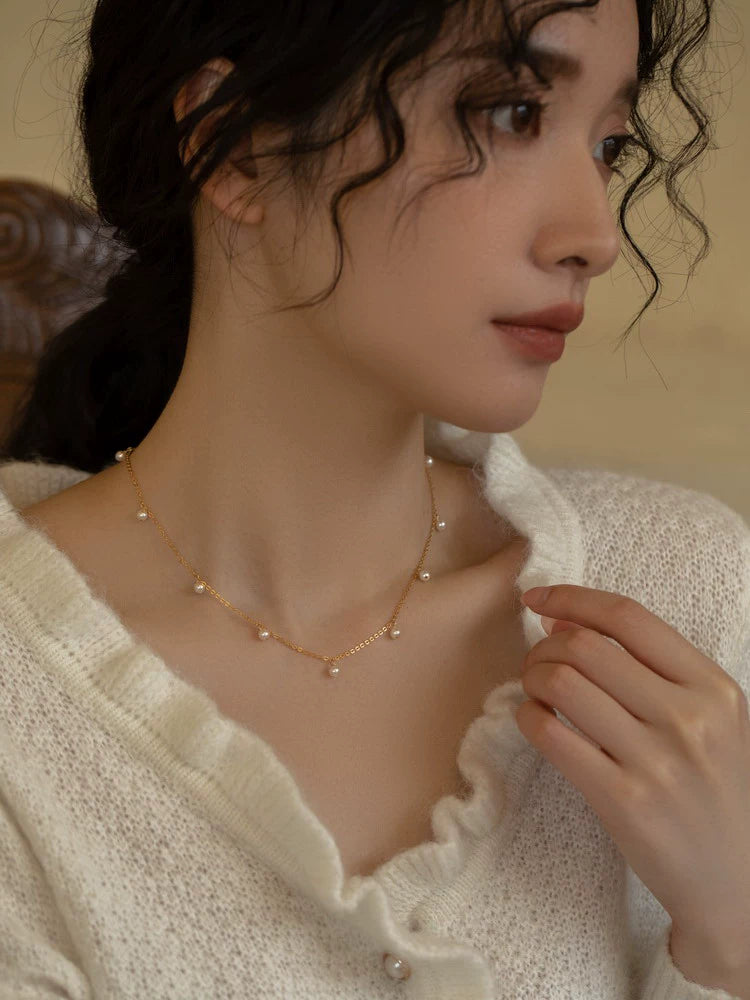 Handwoven Pearl Necklace Chain Choker Girls