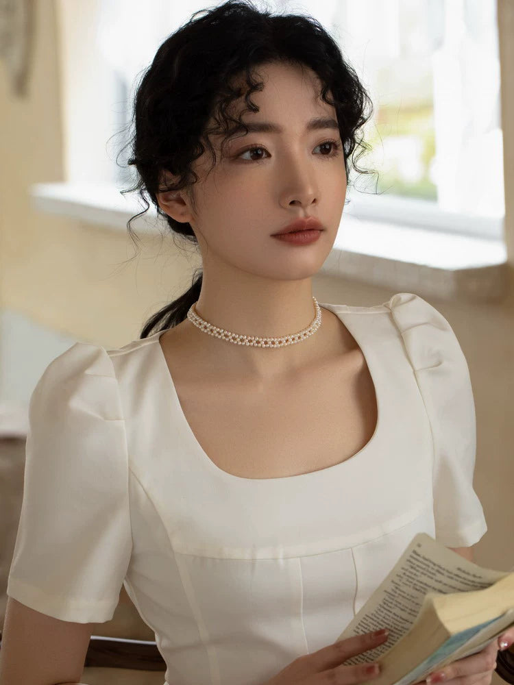 Natural Pearl Necklace Chain Choker Double Layer Retro Simple Girl Gift