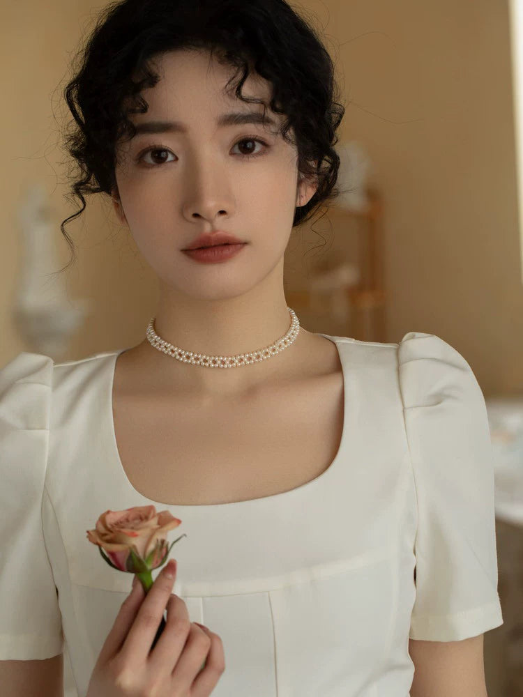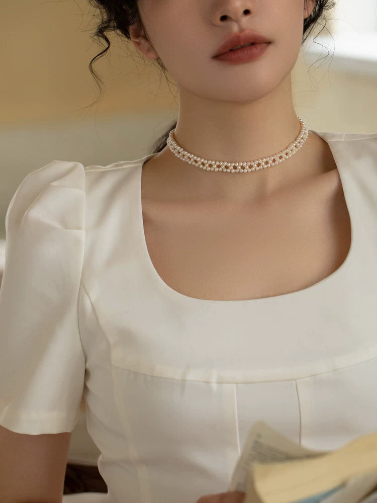 Natural Freshwater Pearl Necklace Handwoven Lace Small Pearl Choker Necklace
