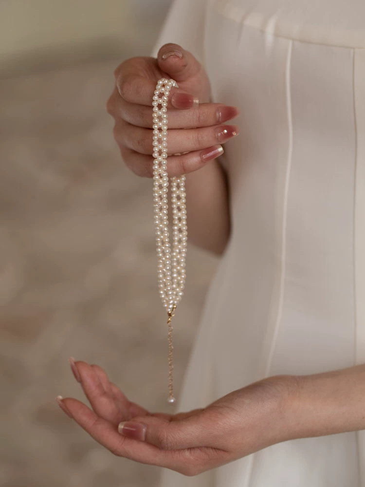Vintage Double Pearl Stacked Necklace Freshwater Pearl Chain Sweater Skirt Women