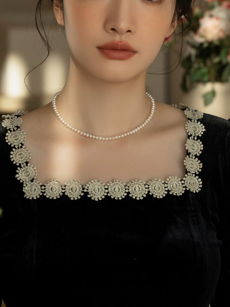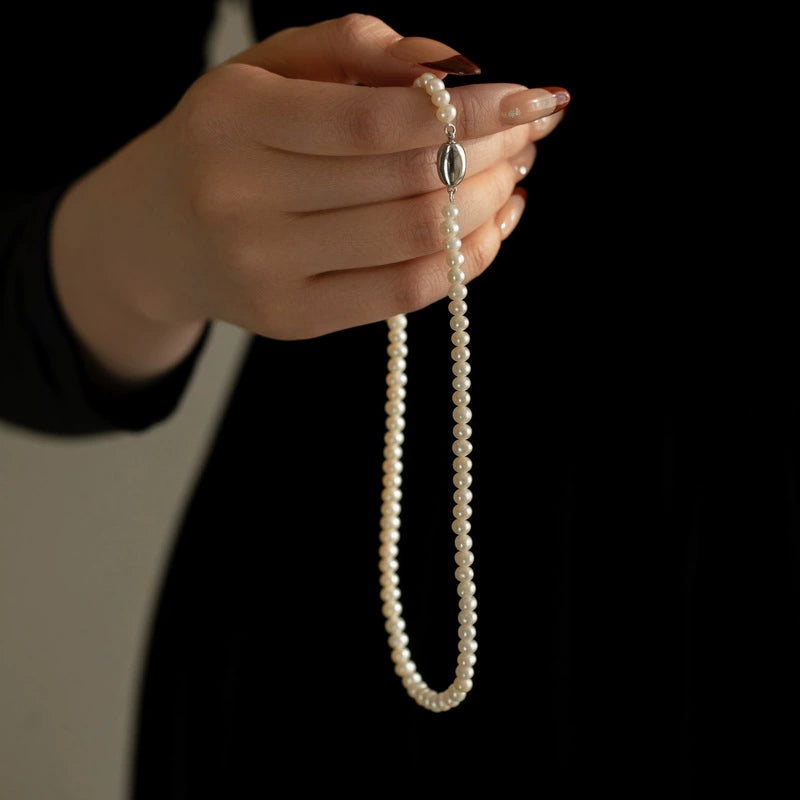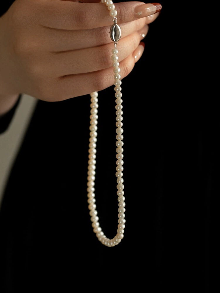 Pearl necklace, female small fragrant wind chain 925 silver stacked wear for mother small pearls