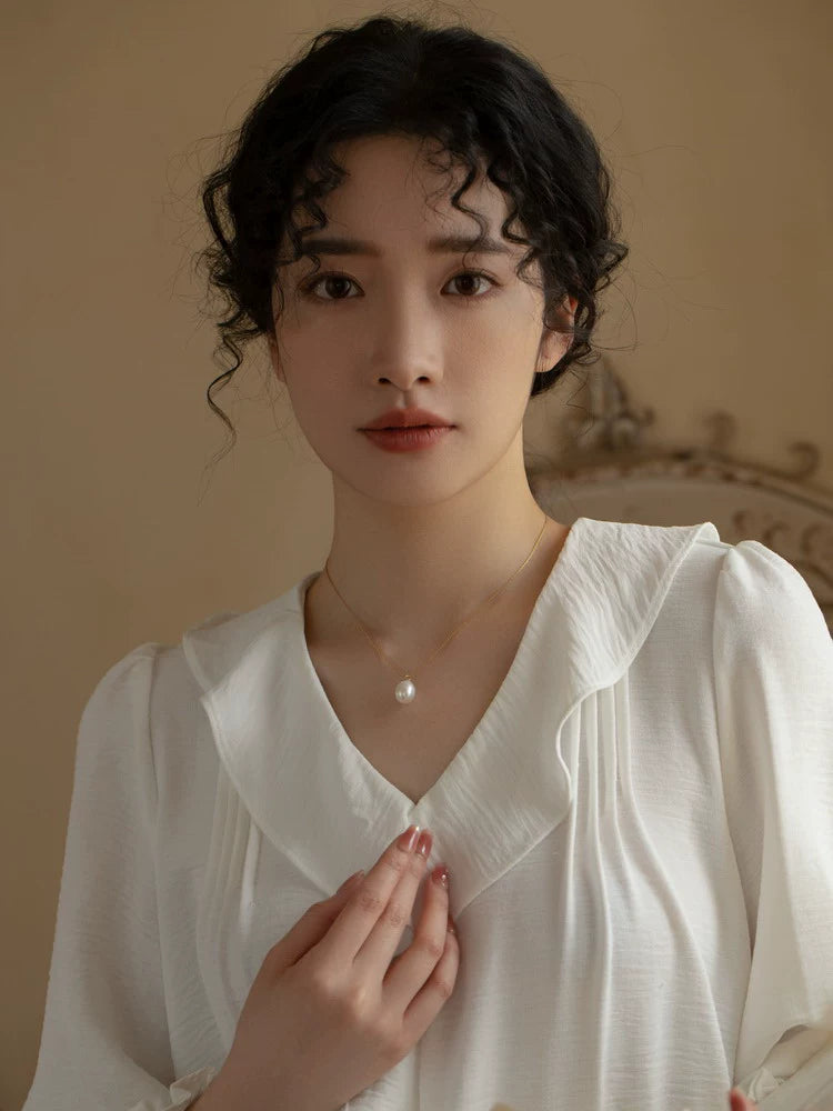 Natural Pearl Necklace Chain Choker Double Layer Retro Simple Girl Gift