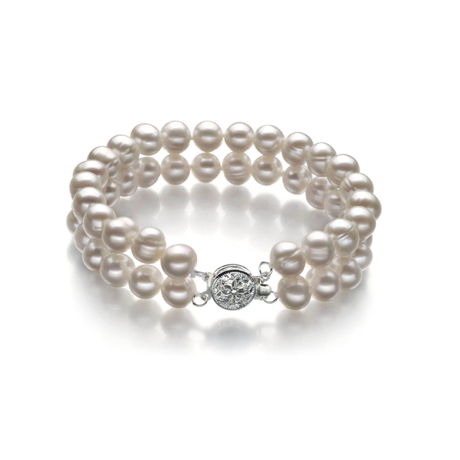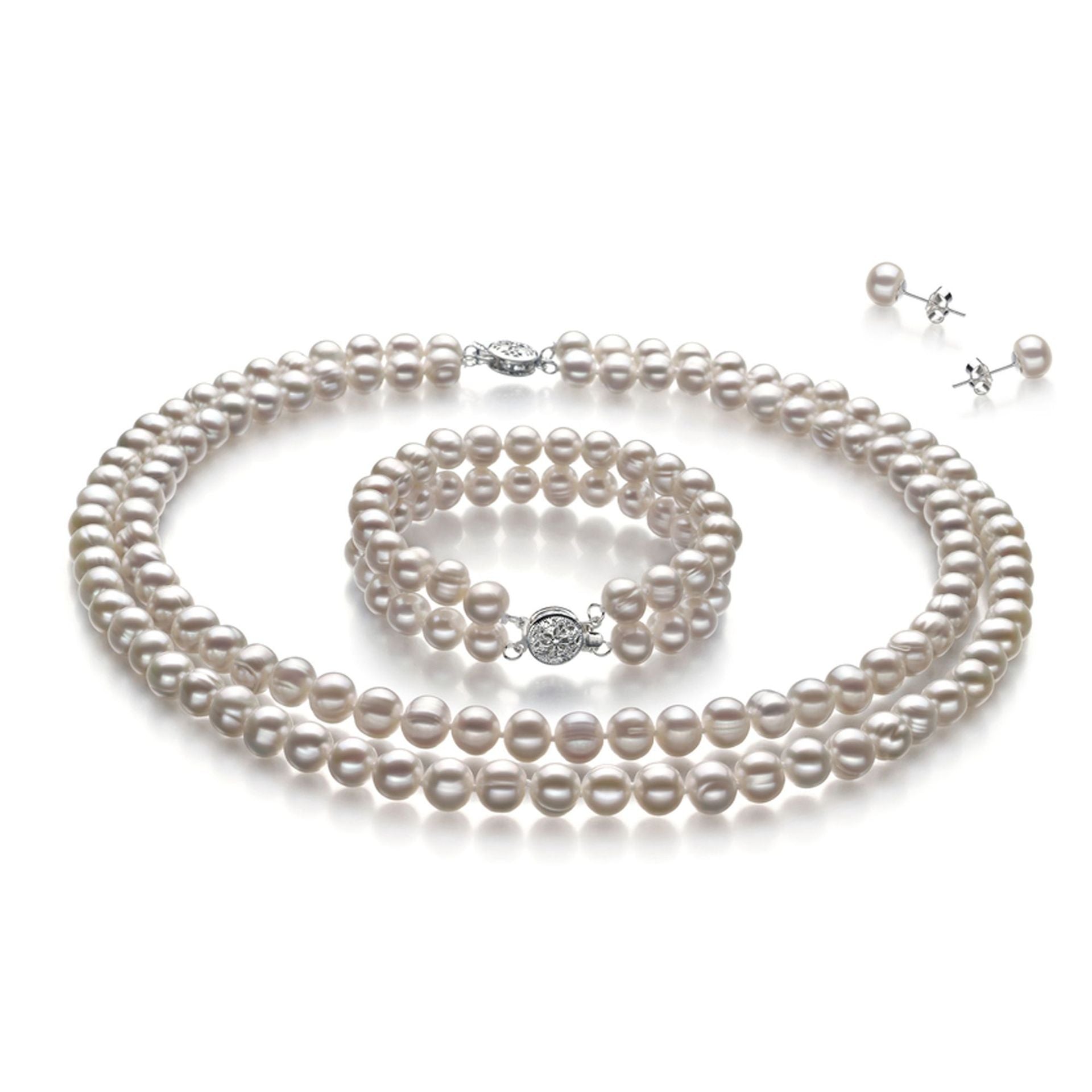White Freshwater Pearl Necklace Bracelet Earrings Set with 925 Silver Accessories Double Row Pearl Jewelry Wholesale